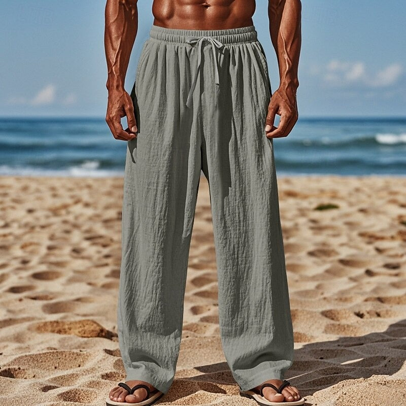Adoptá el estilo del Pantalón Hudsen Cotton. Cortado a mano para un movimiento libre y fluido, combina lino y algodón premium en una textura liviana que acompaña cada paso. Su cintura ajustable con cordón y su silueta amplia evocan el espíritu costero con distinción, ideal para caminar descalzo en la arena o disfrutar de una tarde frente al mar con estilo relajado.