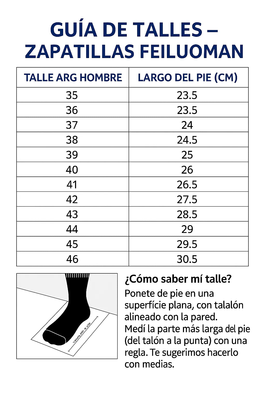 Más de 1 millón de pares vendidos en EE.UU. avalan la calidad y el confort de este modelo. Las Feiluoman son tendencia por su combinación única de diseño + comodidad + rendimiento. Ahora podés ser parte de esta revolución del calzado.